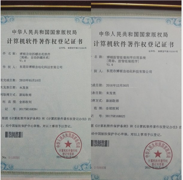博頓自動化自發展以來,都致力于自動化設備的研發與生產,通過技術的研究,進一步優化自動化設備,研發團隊和研發人員經過反復的實驗,刻服研發過程中的種種困難,解決了一個又一個的難題,成功研發了多項技術和新型設備,并獲得國家知識產權局頒發的多項專利證書。